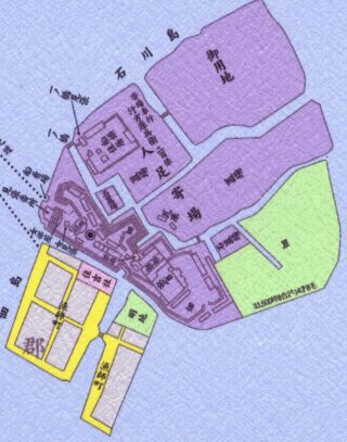 前方佃島、後方石川島高層ビル群→人足寄場跡