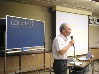 竹の塚地域学習センターと楽学の会の主催で、小学1年生から4年生まで(保護者同伴可)を対象とした「夏休み教室」として、「みんなで考えよう、地球のことを!」と題し、地球温暖化についての講座を開催しました。竹の塚地域学習センターが当日まで応募を受付けた結果、小学生43名、保護者6名の多数の参加がありました。