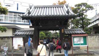 安養院・「槍掛けの松」の清亮寺・長円寺・横山家(近所のお年寄りが飛び入りの説明のハプニング)・本陣跡・赤門寺の勝専寺・鷹野鳥見屋敷跡・不動院・慈眼寺を廻り、千住宿問屋場・貫目改所跡、ここで10分間の休憩をとり、3時10分に再スタートした。千住大橋のたもとで引き返す頃には元気だった受講者にも疲れが見え始めたが、4時半には最終地点の北千住駅前に到着、予定時間を若干オーバーの約3時間、一人の脱落者もなく無事に町歩きを終了した。 (鹿島健一)