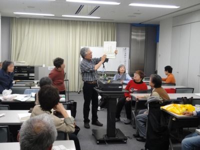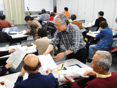 2日目はあいにくの雨、室内での講座となった。雨が幸いしたようで、大淵講師が一人一人に対してアドバイスしたのは効果的であった。参加者全員が自分の絵を完成。楽しい講座であったと満足の様子であった。孫に、描いた絵を送る、との受講者の言葉には感動。(小林徹)