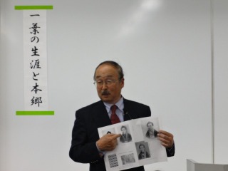 10月14・21日(金)の2回講座で、1回目は受講者42名、文京ふるさと歴史館友の会のボランティア渡邊征夫講師による講座が行われた。講師が準備された資料には、写真入りで一葉の短い生涯の生きざまが紹介されおり、家族、出会いの人々の様子、住み家など詳細な講義により、その世界に引き込まれるような感じでした。