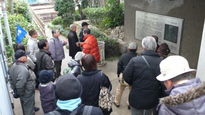 3回目は大森地区の現地学習、17名の参加で、大森貝塚記念碑、大森貝塚遺跡庭園、品川歴史館を寒風の中にも関わらず元気に見学。座学で得た知識を基に「百聞は一見にしかず」でより理解を深めた。