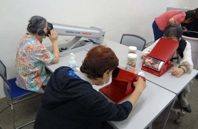 また、万華鏡がもっと欲しいという声がありスタッフが大童で対応する場面もあった。時には講師のユーモアで会場が笑いに満ち何とも言えない温かい雰囲気に包まれた講座であった。 (今野君江)