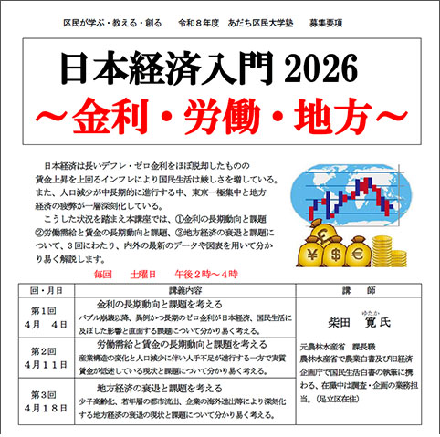 日本経済入門2026 ~金利・労働・地方~ (令和8年4月開催) ![]()