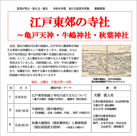 江戸東郊の寺社~亀戸天神・牛嶋神社・秋葉神社~(令和8年5月開催 )![]()
