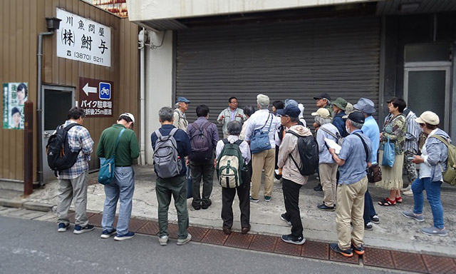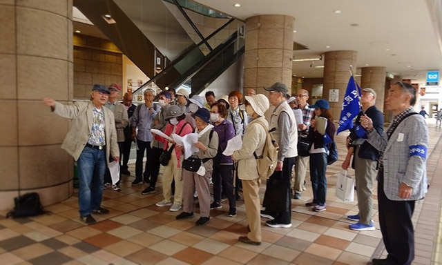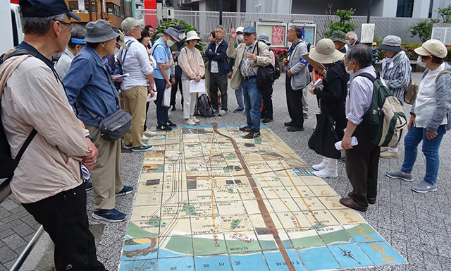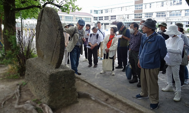 (解散) 「現地学習」では、約2時間半、前3回の講義で話題となったゆかりの地を講師と共に探訪致しました
